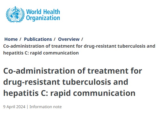 Co-administration of treatment for drug-resistant tuberculosis and hepatitis C: rapid communication. World Health Organization, 2024 Mar (EN)