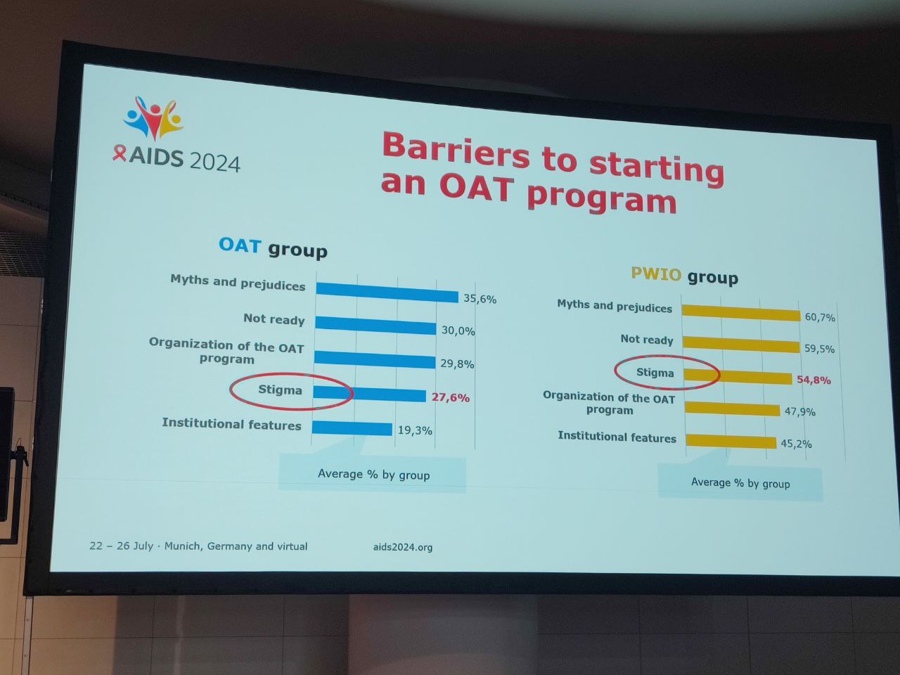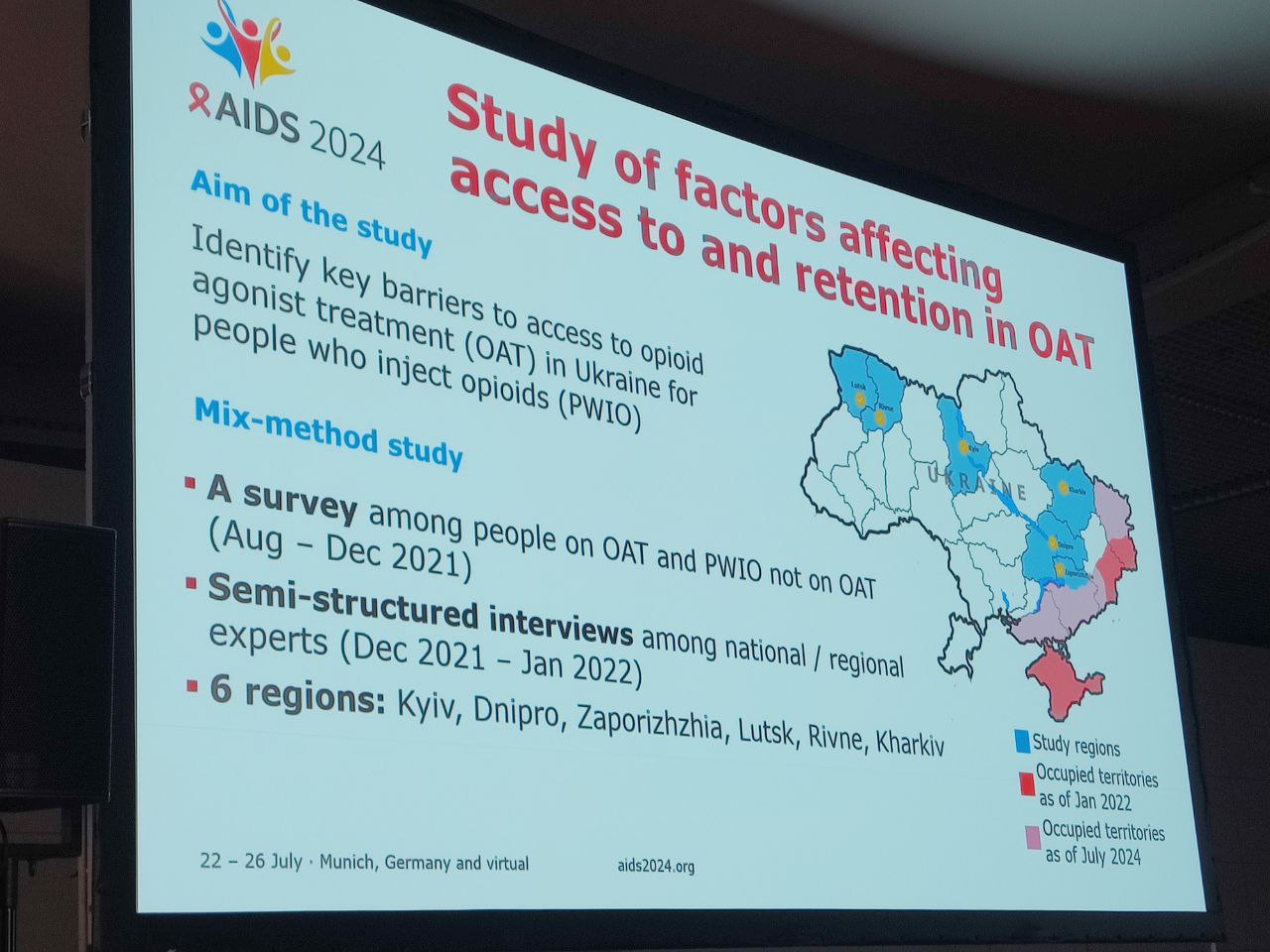 On July 24, the UIPHP senior researcher Tetiana Kiriazova made a presentation at the AIDS 2024 session devoted to stigma and discrimination as barriers to accessing health care services, including HIV treatment and prevention.