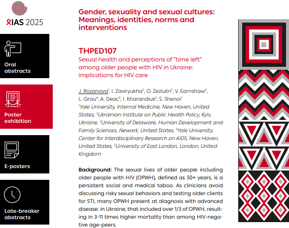 На конференції "IAS2025" Український інститут політики громадського здоров’я спільно з партнерами з Єльського університету та інших наукових установ представив результати дослідження про сексуальне життя літніх людей, які живуть з ВІЛ в Україні.